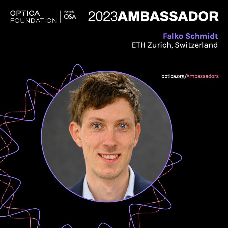 Falko Schmidt has been announced as one of the 10 OPTICA Ambassador for 2023. This award goes to highly exceptional members of the OPTICA society in optics and photonics, who have shown their dedication in volunteerism and mentorship. Their role is to provide guidance and advice to young optics and photonics researchers.