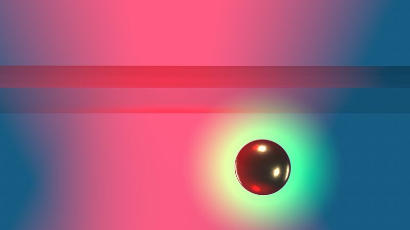 Non-spherical nanoparticle held by optical tweezers. The particle is trapped against the cover slide.