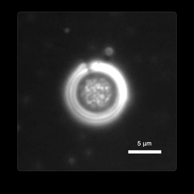 Hollow condensate formation of a DDX4N1 protein droplet under local thermal stimulation.